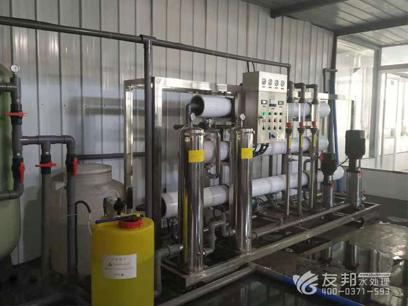 原水→原水箱→原水泵→石英砂過濾器→活性炭過濾器→軟水處理器(添加阻垢劑裝置)→精密過濾器→高壓泵→一級反滲透(RO)裝置→ 二級反滲透(RO)裝置→用水點